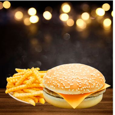 Pão, hambúrguer artesanal 190g, queijo-prato, fritas e molho da casa.