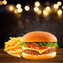 Pão, hambúrguer artesanal 190g, queijo-prato, alface, tomate, fritas e molho da casa.
